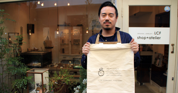 こだわりあるジュエリー職人、LCFの代表立川さんに今回、フルカラーバッグ、ドイツテューテタイプのエコバッグを作りたいというお話を頂きました。(※ 現在は大岡山駅に移転)