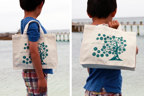 - バッグのサイズは、幅:約32cm×高さ:約25cm×マチ:約10cmの厚手の12オンスコットンで作成されております。もちろんバッグにオリジナルのデザインやロゴをプリントすることが可能です。学校のランドセルにプラスする手提げバッグ、卒園などの記念などに作成してみてはいかがでしょうか?