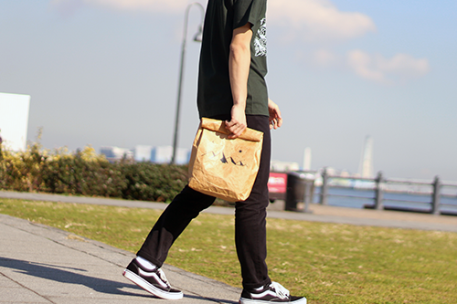 - タイベック®を使用した、茶色のまるで紙袋のようなバッグです。でも実は非常にこだわっているバッグで、開口部にはマグネットがついており、くるっとまるめて閉じることが可能です。また、た、裏地もあり、しっかりしたバッグです。外ポケットもあります。かっこいいこのパンナバッグで差をつけよう!タイベック®は近年、アパレルやアウトドアブランドなどでも注目されているとても頑丈な新しい素材です。30枚から製作可能です。こだわりのタイベック®に掲載中。