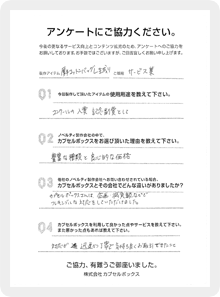 たくさんのお喜びの声カプセルボックスのサービスをご利用頂いた方からの直筆メッセージ