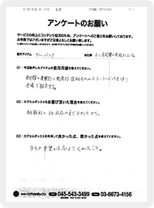 - A上記と同じになりますが、電話やメールでの対応がすばらしい。今回は本当にありがとうございました